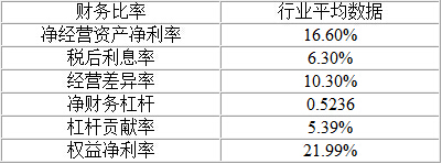 與同行業(yè)相比權(quán)益凈利率高,原因在于凈財(cái)務(wù)杠桿高。