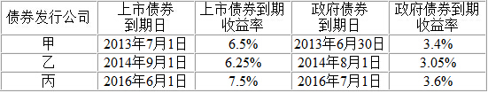 方案2:平價(jià)發(fā)行10年期的長(zhǎng)期債券。目前新發(fā)行的10年期政府債券的到期收益率為3.6%。H公司的信用級(jí)別為AAA級(jí),目前上市交易的AAA級(jí)公司債券有3種。這3種公司債券及與其到期日接近的政府債券的到期收益率如下表所示: