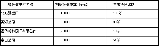 納入北方閥門2009年度合并財務報表合并范圍的子公司情況如下: