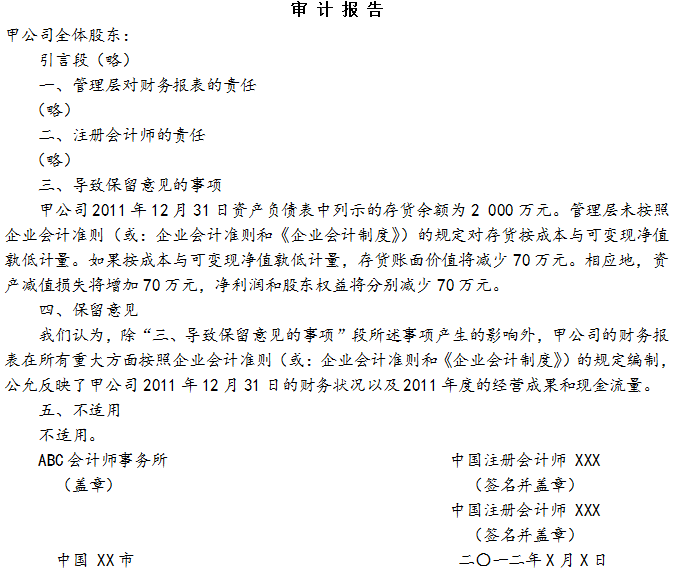 、賹徲(jì)報告意見類型:保留意見