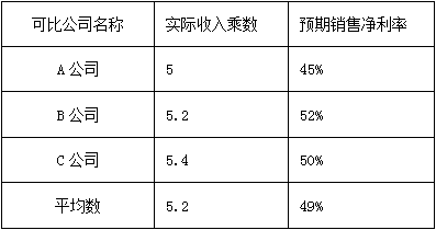收入乘數(shù)估計方法主要適用于銷售成本率較低的服務(wù)類企業(yè),或者銷售成本率趨同的傳統(tǒng)行業(yè)的企業(yè)。