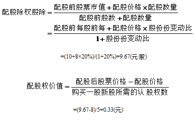 方案一:以目前股本10 000萬股為基數,每10股配2股,配股價格為8元/股。
