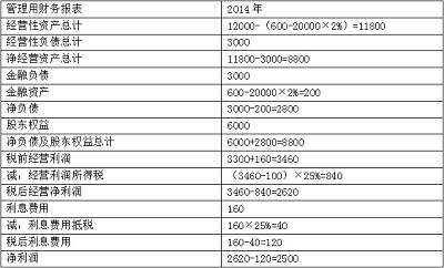 (1)編制甲公司2014年的管理用財務(wù)報表(提示:按照各種損益的適用稅率計算應(yīng)分擔(dān)的所得稅,結(jié)果填入下方表格中,不用列出計算過程)