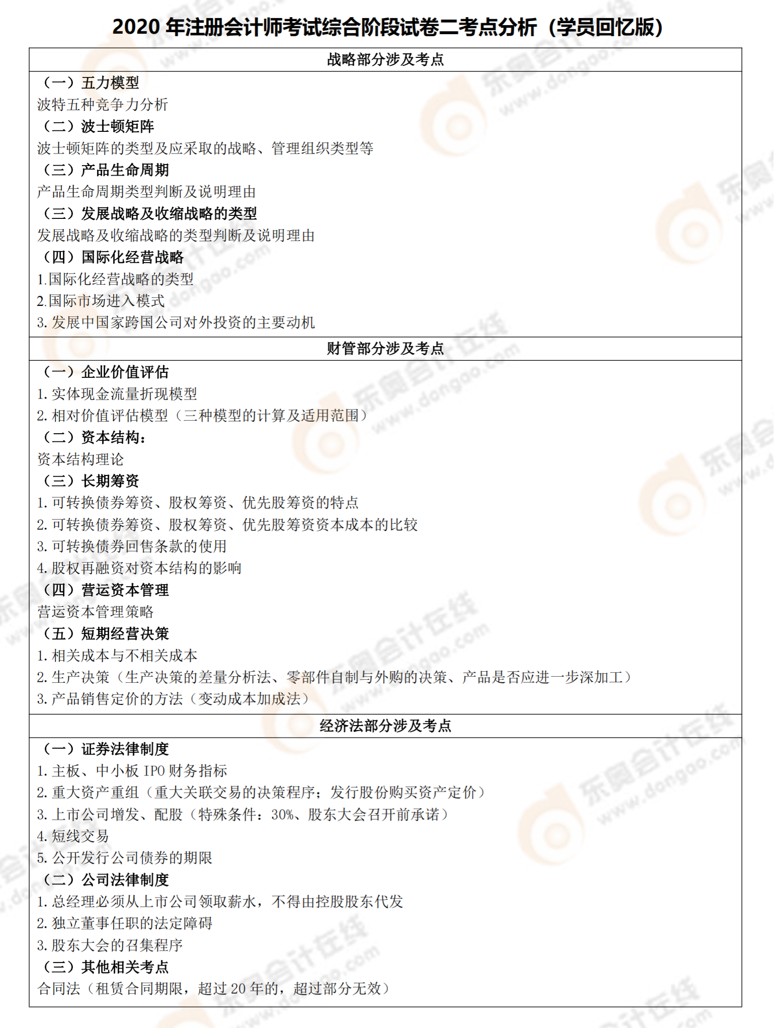2021年注會綜合階段試卷二考情考點分析