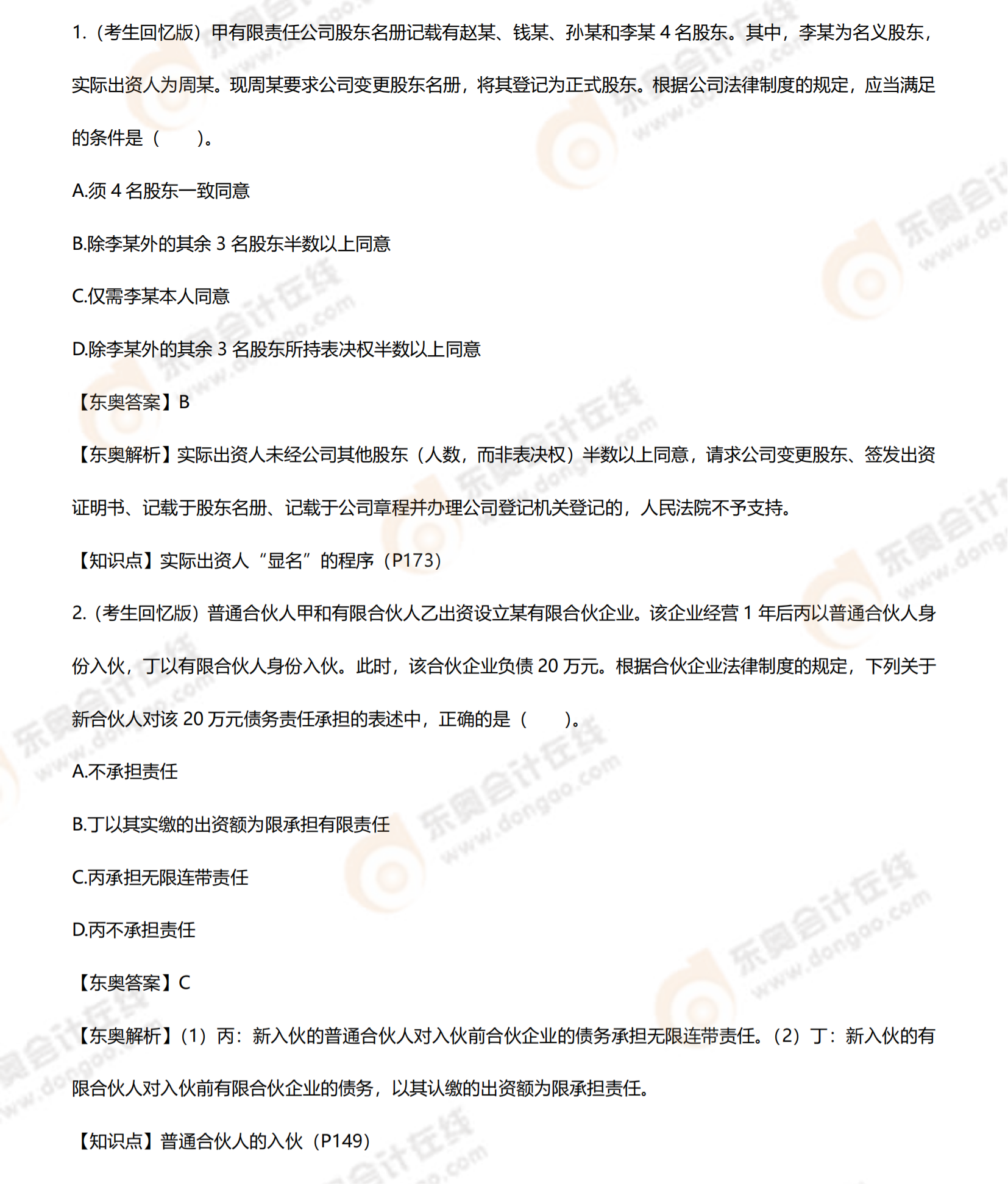 2021年注會(huì)延考地區(qū)經(jīng)濟(jì)法考題及答案解析第一批次_考生回憶版