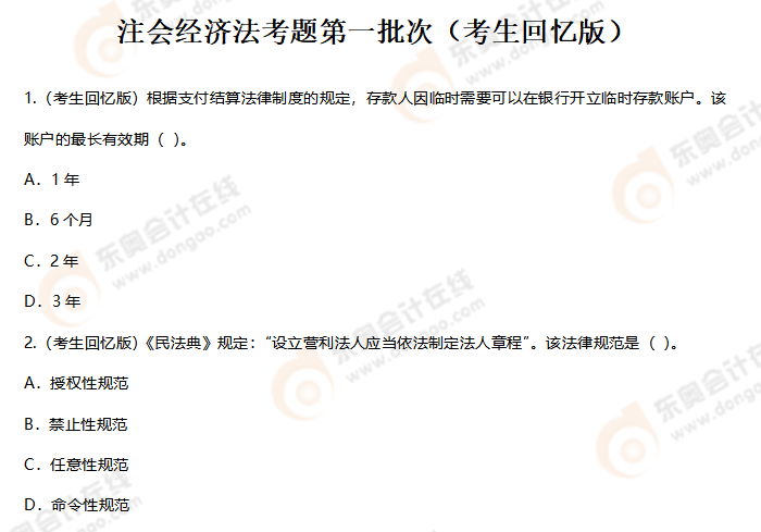 2022年注會經(jīng)濟法試題難不難?還記得考了哪些知識點嗎?東奧會計在線根據(jù)考生回憶反饋,為大家整理了2022年注會經(jīng)濟法第一批次部分考題及參考答案,趕快來看看吧!