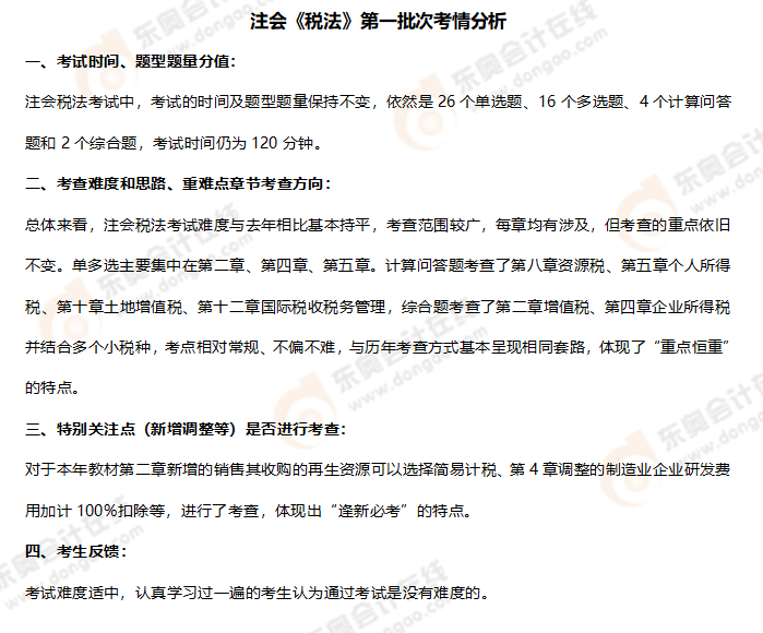 注:以上注會(huì)稅法考試試題內(nèi)容由考生回憶反饋,東奧教研團(tuán)隊(duì)統(tǒng)計(jì),東奧會(huì)計(jì)在線整理發(fā)布
