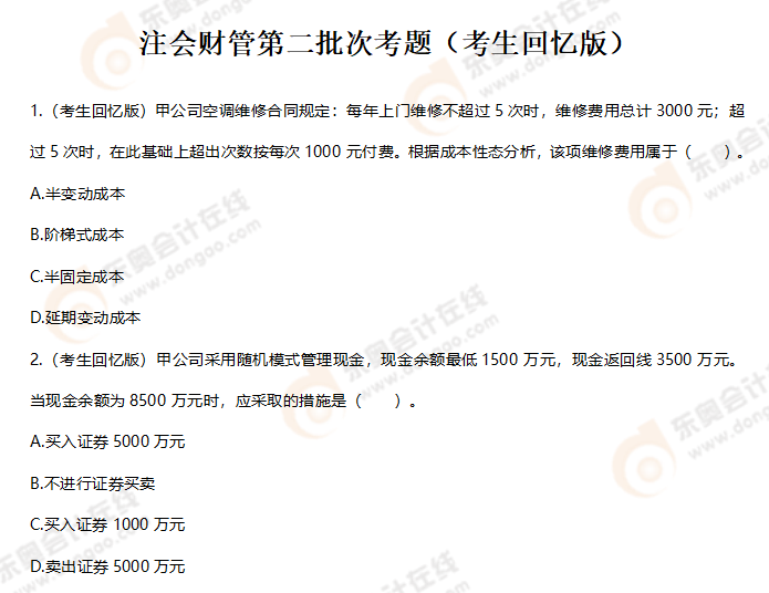 注:以上注冊會計師考試試題內(nèi)容由考生回憶反饋,東奧教研團隊統(tǒng)計,東奧會計在線整理發(fā)布