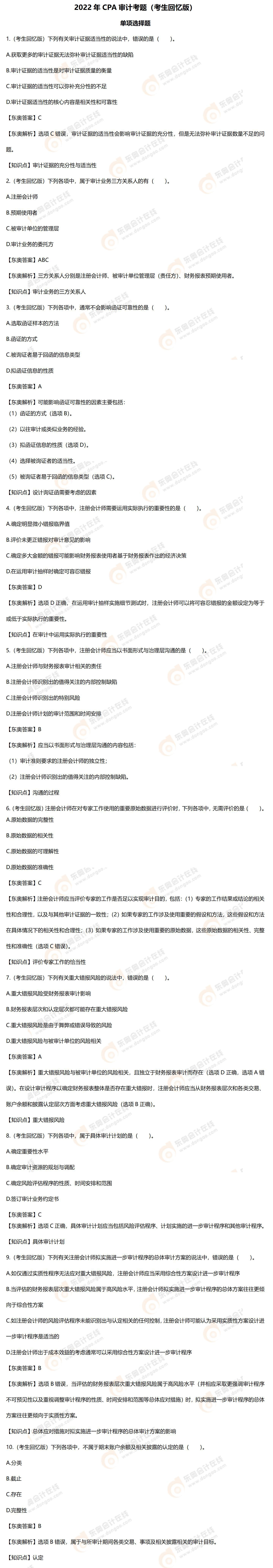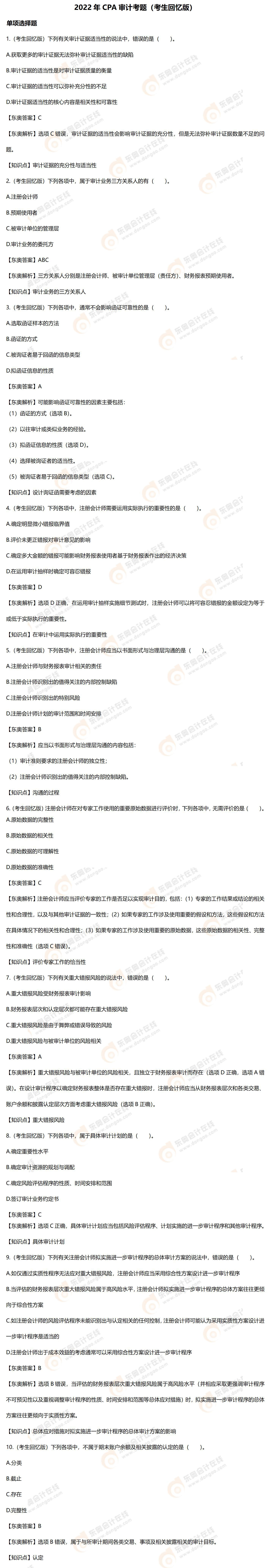 2022年注會(huì)審計(jì)考題及參考答案解析(考生回憶版)