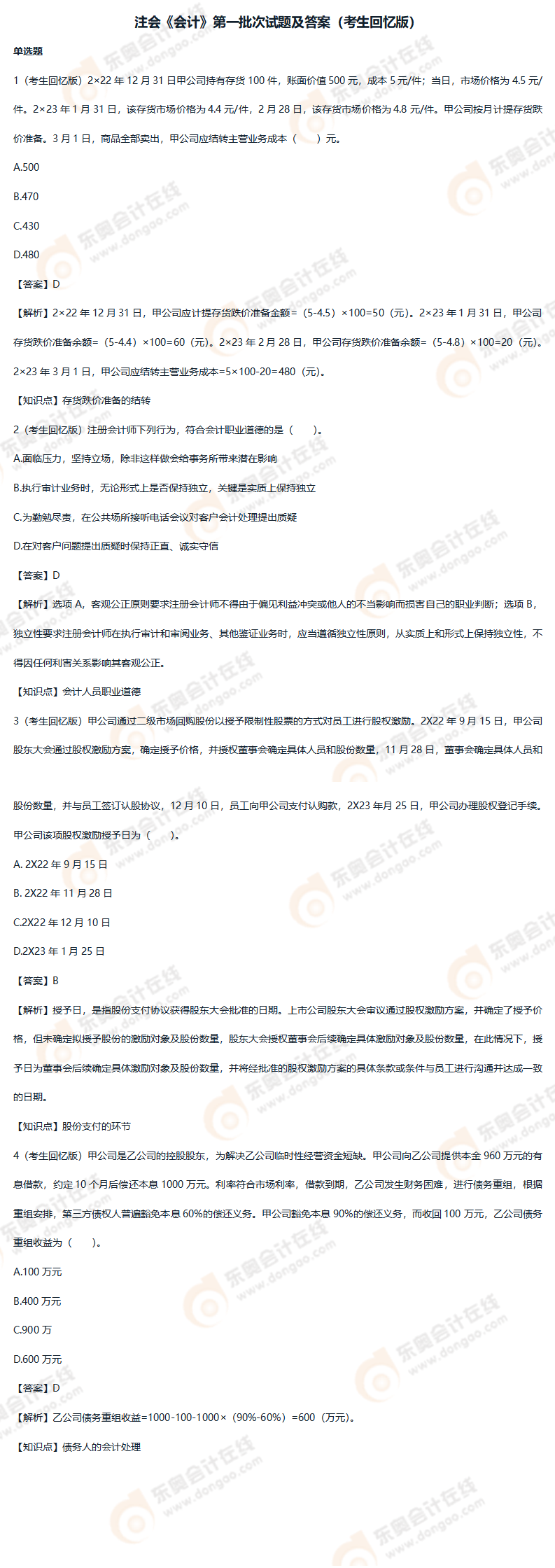 更多考題:2023年注會考試考題及答案解析匯總(考生回憶版)