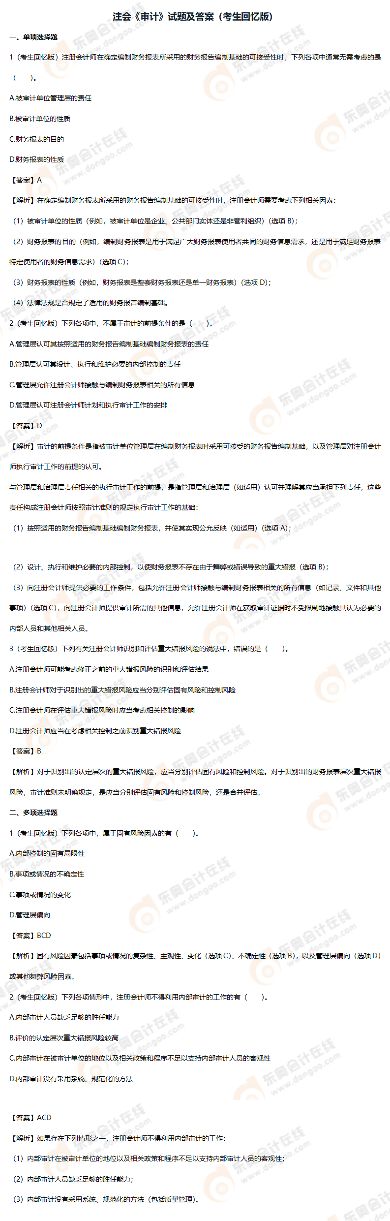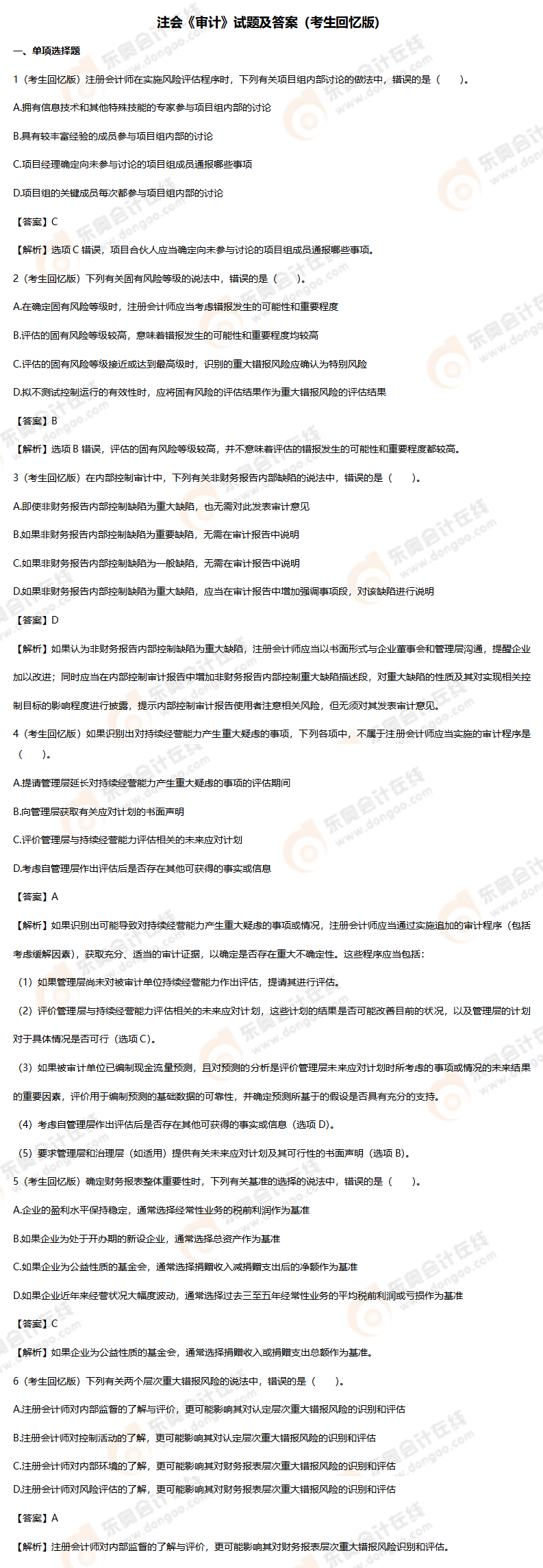 注:以上注冊會(huì)計(jì)師考試試題內(nèi)容由考生回憶反饋,東奧教研團(tuán)隊(duì)統(tǒng)計(jì),東奧會(huì)計(jì)在線整理發(fā)布