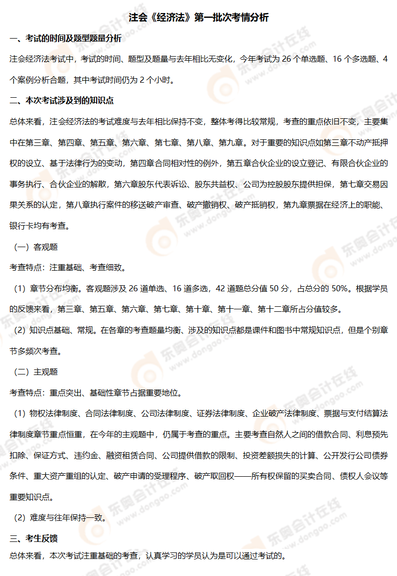 注:以上注會經(jīng)濟法考試試題內(nèi)容由考生回憶反饋,東奧教研團隊統(tǒng)計,東奧會計在線整理發(fā)布