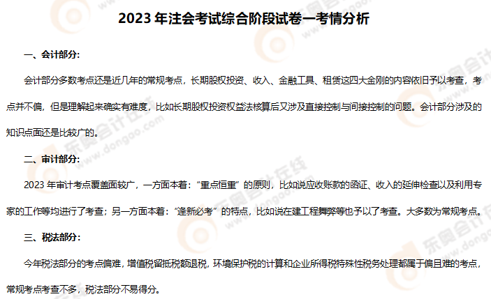 2023年注會(huì)綜合階段試卷一考情考點(diǎn)總結(jié)