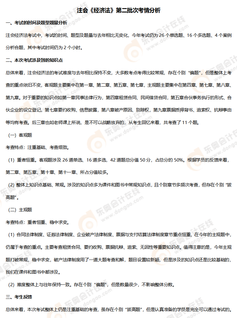 注:以上注會經(jīng)濟(jì)法考試試題內(nèi)容由考生回憶反饋,東奧教研團(tuán)隊(duì)統(tǒng)計(jì),東奧會計(jì)在線整理發(fā)布