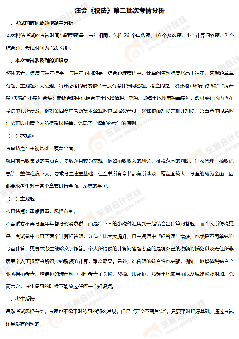 以上就是2023年注會稅法第二批次考點總結(jié)及考情分析的全部內(nèi)容,考生可以參考借鑒。東奧會計在線預(yù)祝大家都能夠順利通過注冊會計師考試!