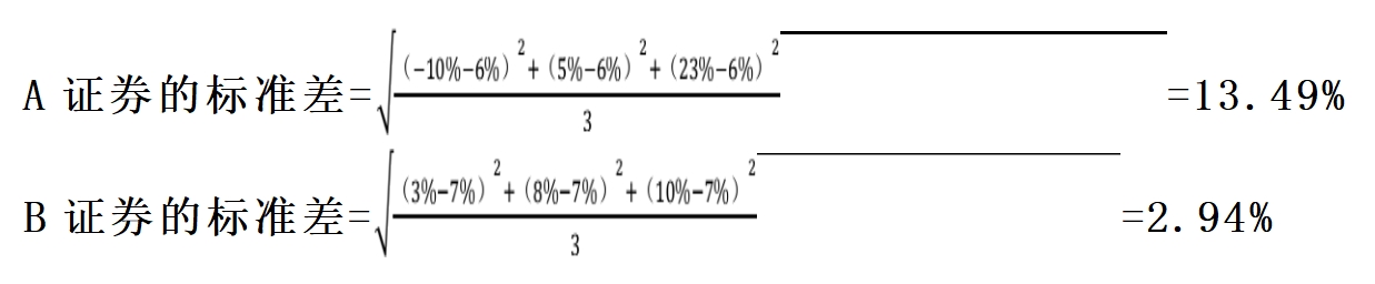 (2) 由于 A、B 證券是 2021 年年初上市的證券,所以給出的歷史收益率是全部歷史收益率,所以求解的標(biāo)準(zhǔn)差是 總體標(biāo)準(zhǔn)差: