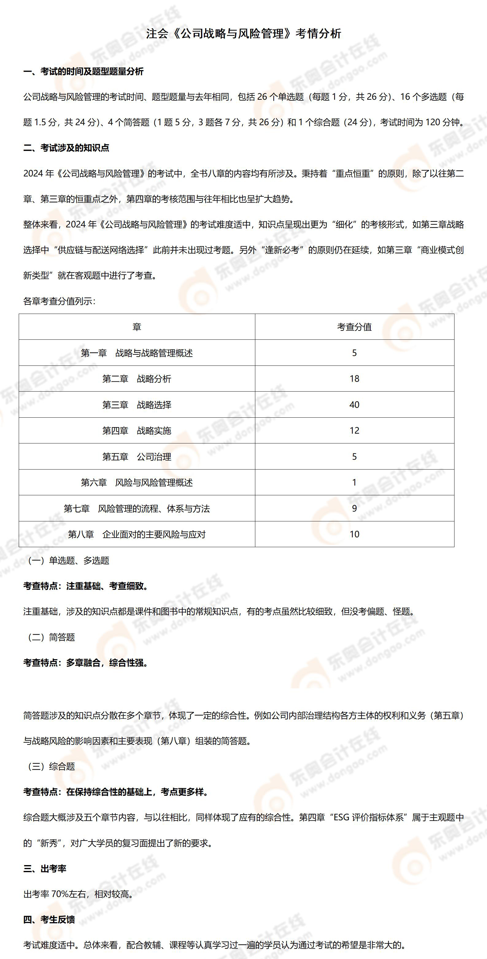 2024年注會戰(zhàn)略考情分析及考點總結(jié)(考生回憶版)