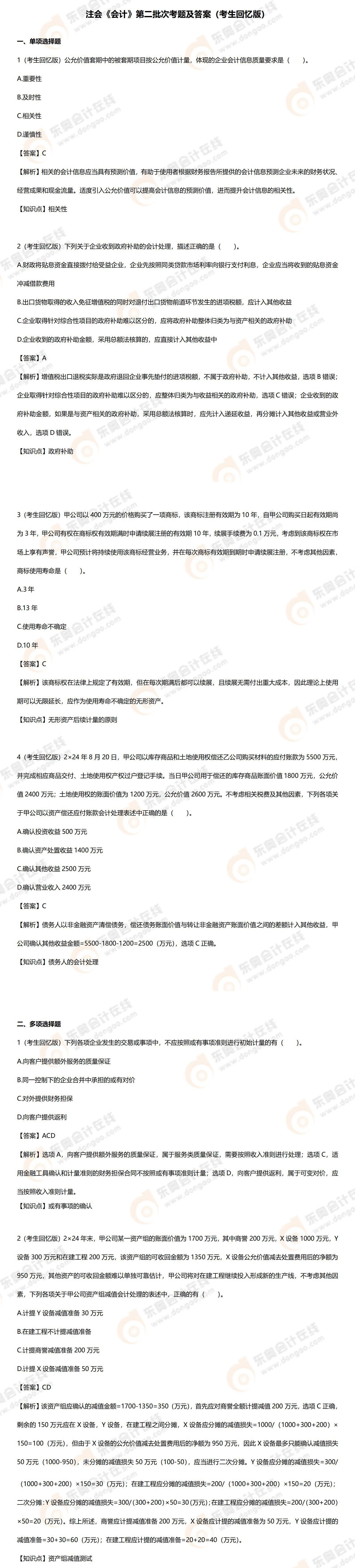 相關(guān)閱讀:2024年注會考試考題及答案解析匯總(考生回憶版)