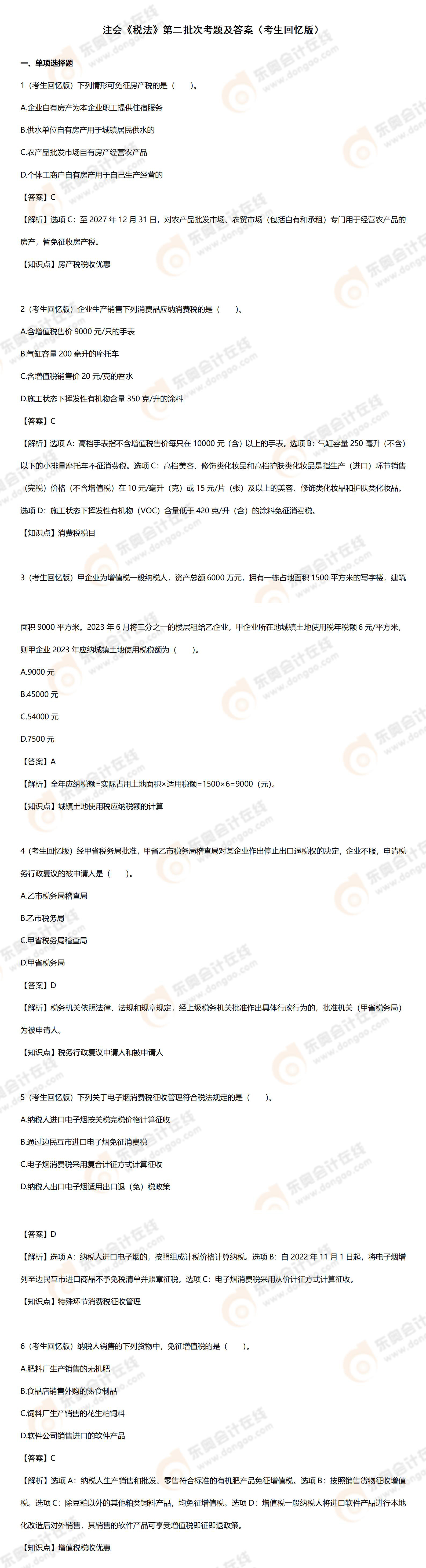 2024年注冊會計(jì)師稅法第二批次考題及答案解析(考生回憶版)