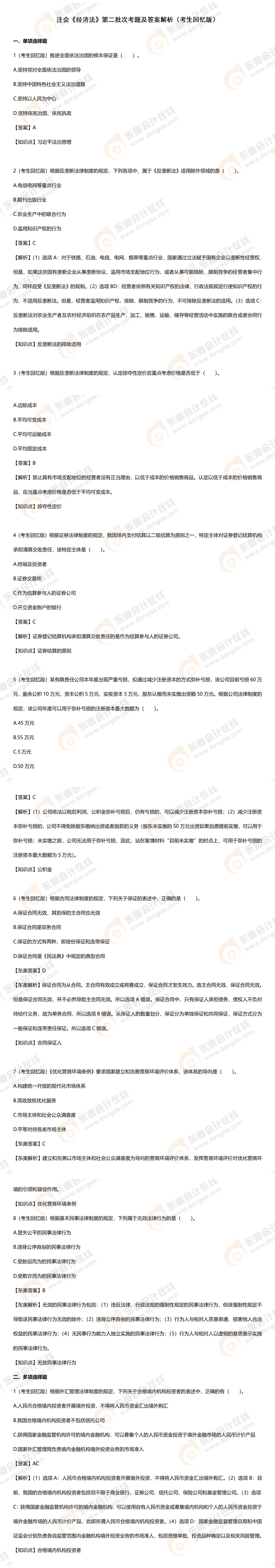24年注冊會計師經(jīng)濟法第二批次考題及答案解析(考生回憶版)