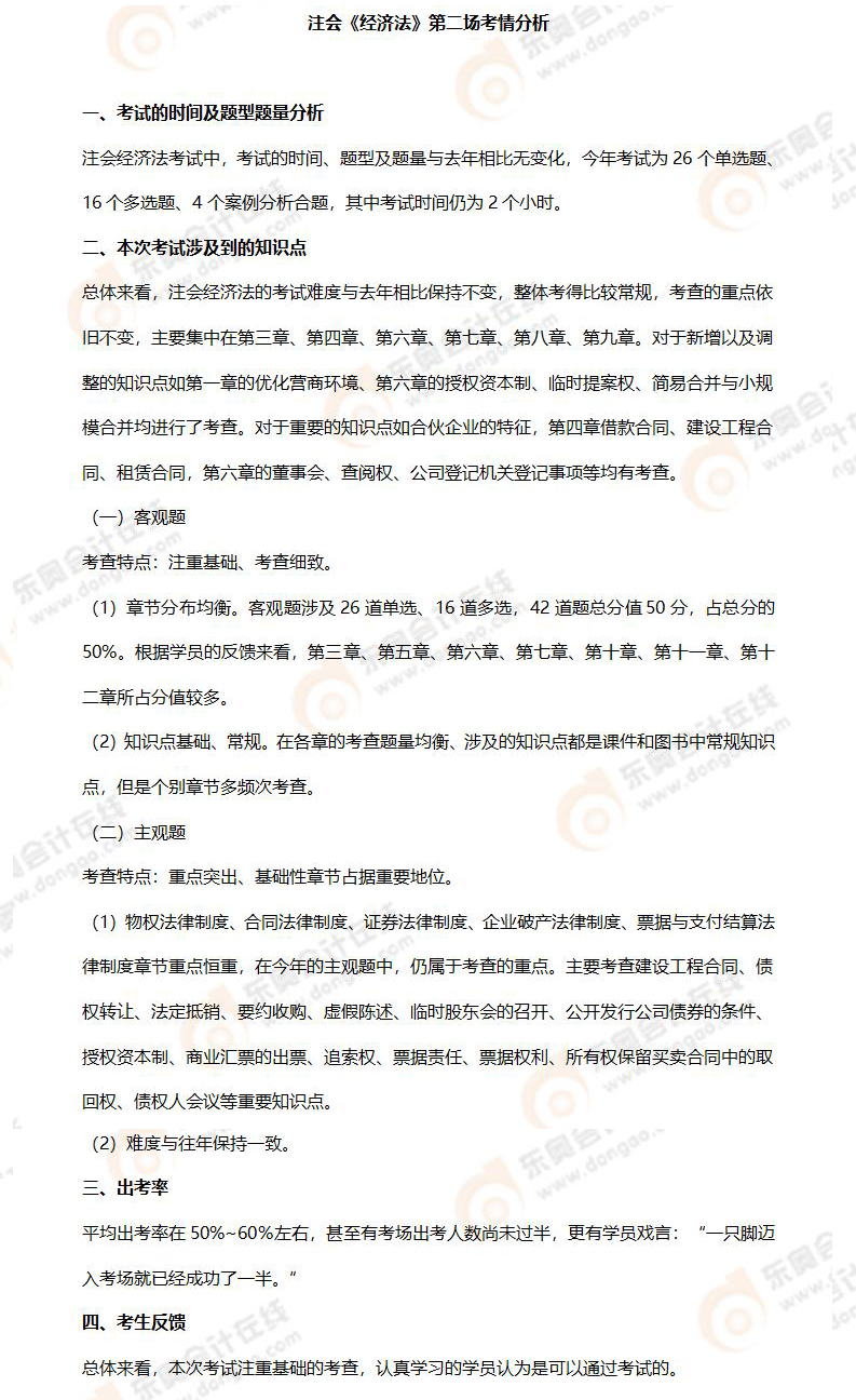 2024年注會(huì)經(jīng)濟(jì)法第二批次的考試已經(jīng)結(jié)束,本屆專業(yè)階段經(jīng)濟(jì)法科目全部考試圓滿完成。大家都考到了自己掌握熟練的考點(diǎn)了嗎?東奧會(huì)計(jì)在線教研團(tuán)隊(duì)整理了2024年注會(huì)經(jīng)濟(jì)法第二批次考點(diǎn)總結(jié)及考情分析,趕快來看看!