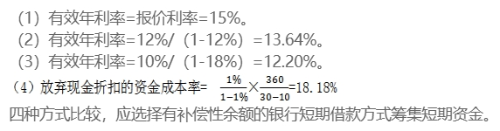 (3)銀行短期借款,利息率為10%,銀行要求補償性余額為借款額的18%;