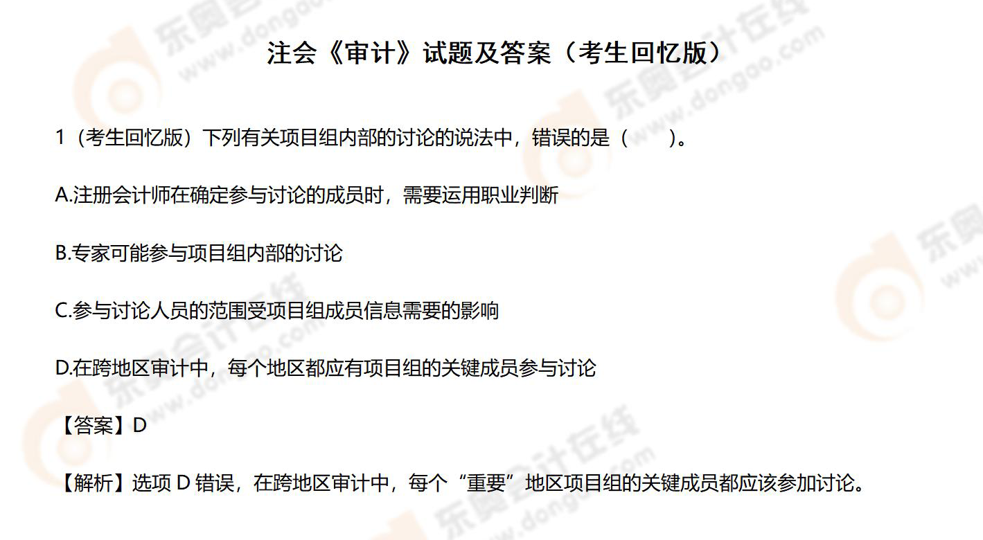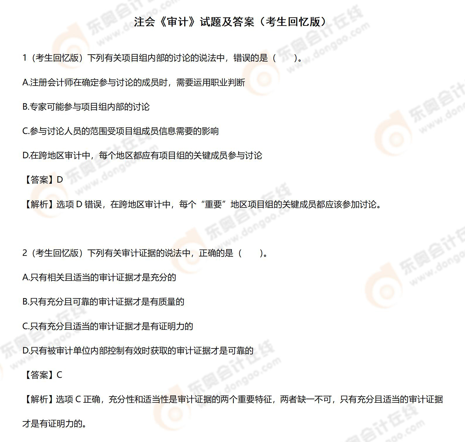 注:以上注冊會計師考試試題內(nèi)容由考生回憶反饋,東奧教研團隊統(tǒng)計,東奧會計在線整理發(fā)布
