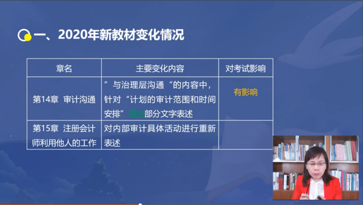 名師直播講解:2020年注冊會計師《審計》科目教材變化