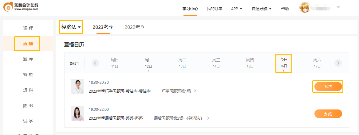 學(xué)習(xí)中心中直播課程位置: