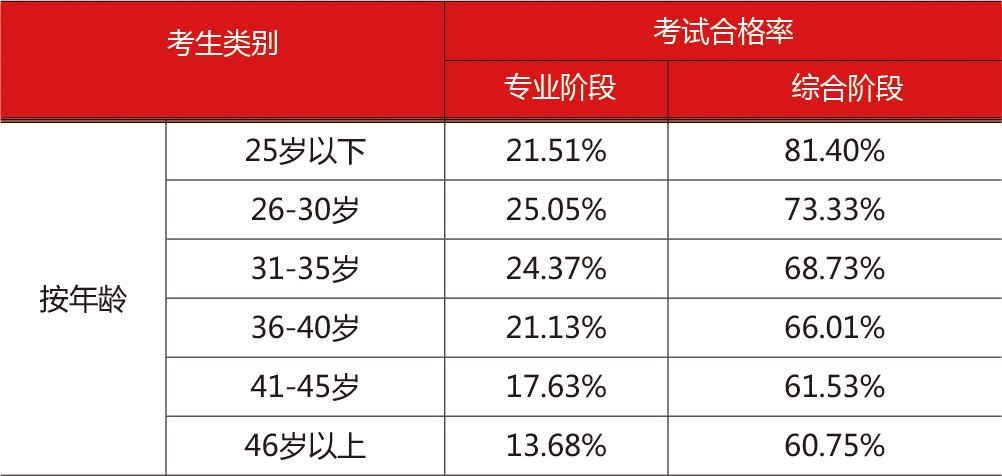 從考生的學(xué)歷來看,碩士考生考試合格率最高,其次是博士考生和本科考生,三者合格率總計(jì)達(dá)到82.99%,是通關(guān)專業(yè)階段考生中的主力軍。