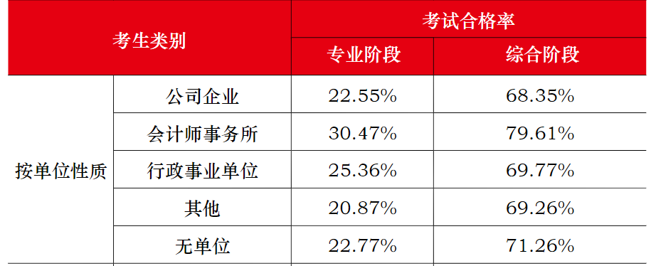 與其他類人群相比,會計(jì)師事務(wù)所從業(yè)人員無論是專業(yè)階段還是綜合階段,考試合格率均大于其他類考生人群。
