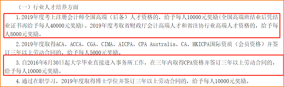 在江蘇省注協(xié)發(fā)布的關(guān)于組織申報2019年度江蘇省注冊會計師行業(yè)人才培養(yǎng)專項(xiàng)資金獎補(bǔ)項(xiàng)目的通知中,明確了申報范圍及標(biāo)準(zhǔn)。符合條件的行業(yè)人才最高可獲得40000元獎勵。