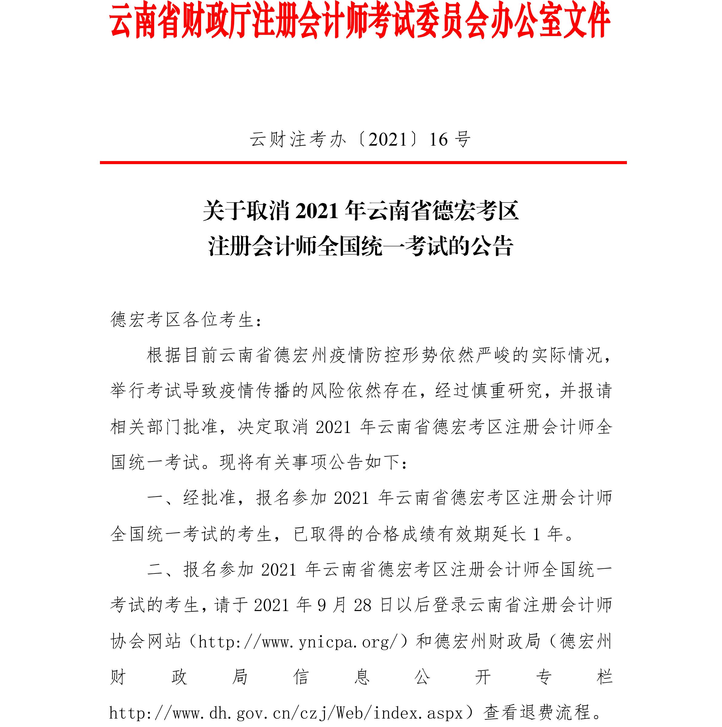 關(guān)于取消2021年云南省德宏考區(qū)注冊會(huì)計(jì)師全國統(tǒng)一考試的公告