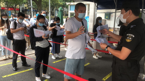 在南京市女子中專學(xué)校,考場外酒精、消毒液、消毒濕巾一應(yīng)俱全。經(jīng)過測溫、出示健康碼、行程碼、48小時(shí)核酸檢測報(bào)告,簽署承諾書等一系列流程,考生們信心滿滿走進(jìn)考場。