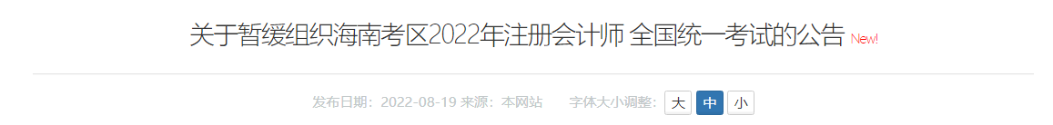 關(guān)于暫緩組織海南考區(qū)2022年注冊(cè)會(huì)計(jì)師全國(guó)統(tǒng)一考試的公告