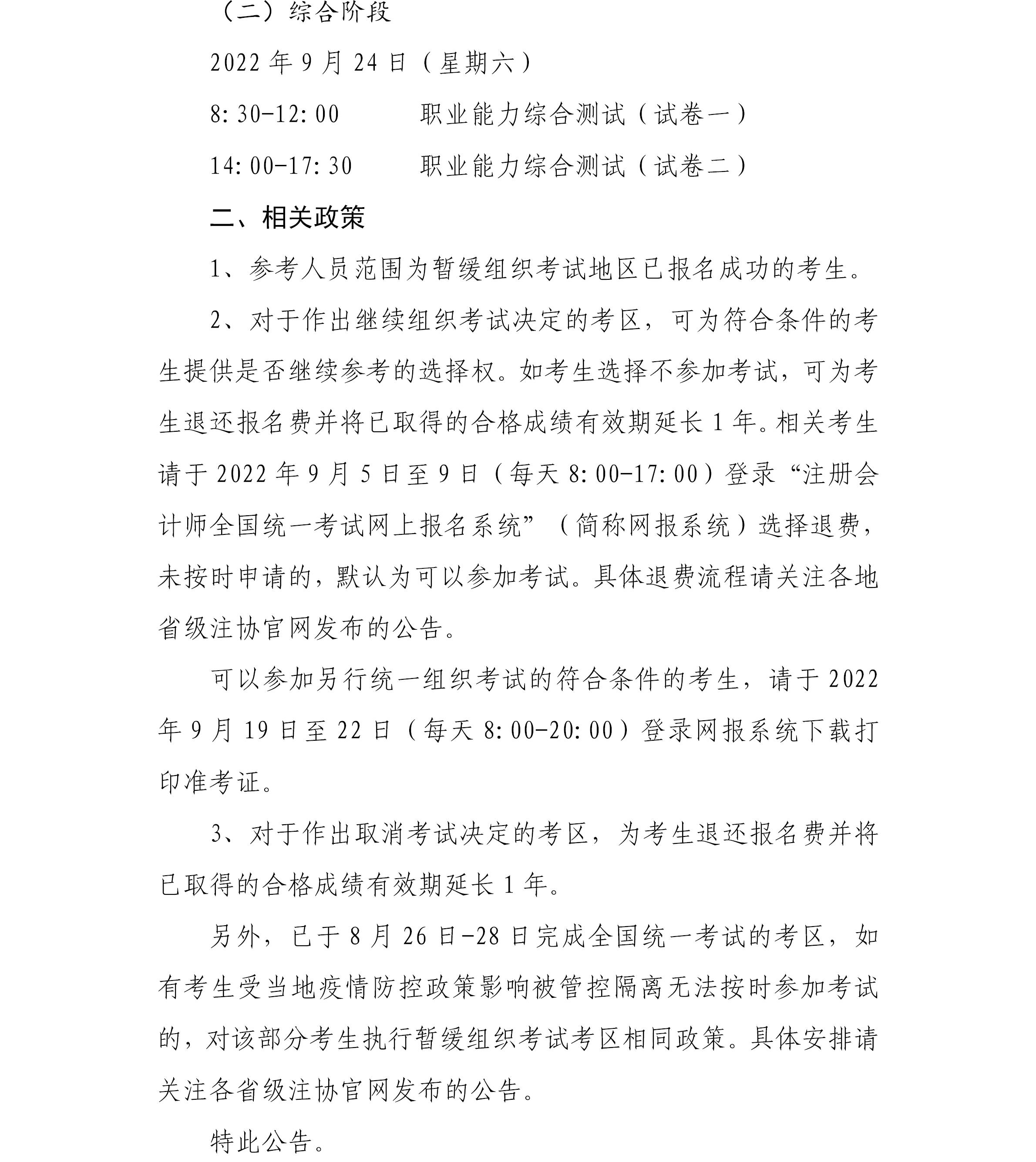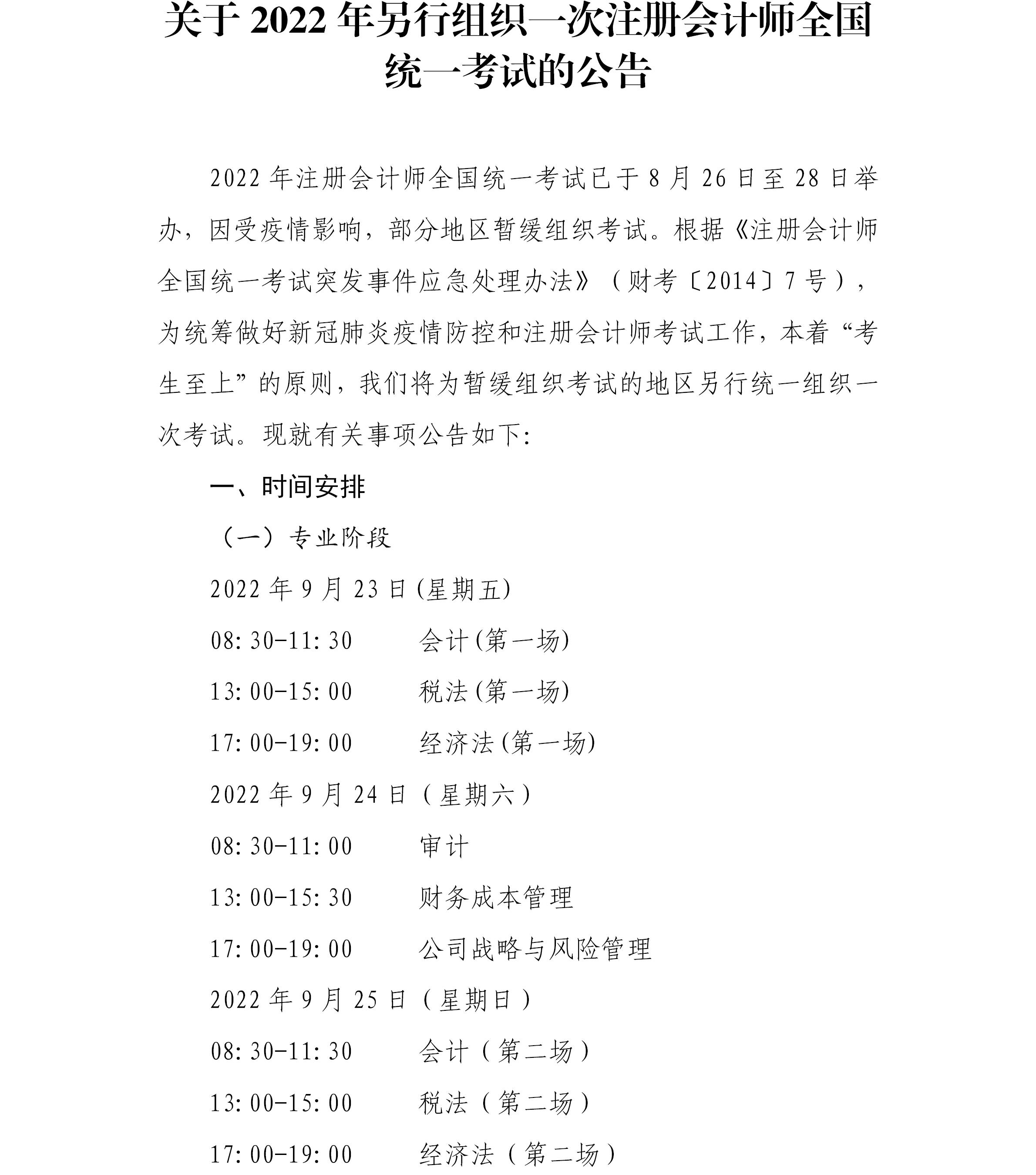 云南注協(xié):關(guān)于2022年另行組織一次注冊會計師全國統(tǒng)一考試的公告