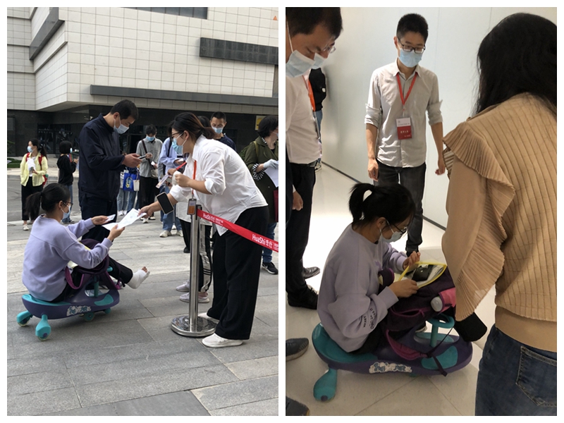 9月24日下午,西安建筑工程技師學(xué)院考點,一位坐輪椅的考生正在考場旁焦急的等待,見此情景,考試工作人員上前詢問,了解到該考生的考場在二層,本人離不開輪椅,正在發(fā)愁自己怎么上到二層。工作人員立即聯(lián)系考點負責(zé)人研究解決考生入場問題,經(jīng)過協(xié)調(diào),最終將考生的考試機位調(diào)整到一層考場空余機位上,并幫助這名考生將輪椅搬上臺階送入考場,幫助行動不便的考生進入考場這樣暖心的畫面在考試中時有發(fā)生。