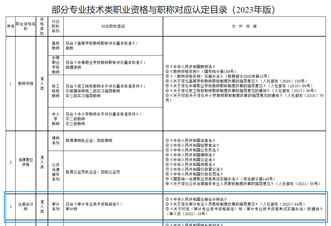 一、專業(yè)技術(shù)人員取得《部分專業(yè)技術(shù)類職業(yè)資格與職稱對(duì)應(yīng)認(rèn)定目錄(2023年版)》(附件)所列職業(yè)資格,即可認(rèn)定其具備相應(yīng)系列、層級(jí)的職稱,用人單位可按管理權(quán)限及相關(guān)規(guī)定聘任相應(yīng)專業(yè)技術(shù)職務(wù),無需換發(fā)職稱證書,專業(yè)技術(shù)人員可據(jù)此作為申報(bào)高一級(jí)職稱的條件。