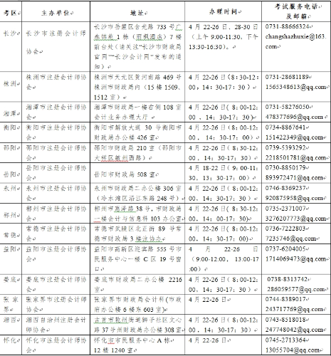 (八)市州注協(xié)現(xiàn)場(chǎng)資格審核、采集照片地址、辦理時(shí)間、考試服務(wù)電話及郵箱。