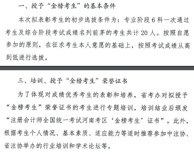 為了貫徹落實(shí)國家和河南省人才戰(zhàn)略,培養(yǎng)行業(yè)優(yōu)秀后備人才,河南省財政廳注冊會計師考試委員會辦公室(以下簡稱省考辦)擬對河南省考試成績優(yōu)秀考生授予“金榜考生”榮譽(yù)稱號,并進(jìn)行后續(xù)跟蹤培養(yǎng)。授予“金榜考生”的基本條件如下: