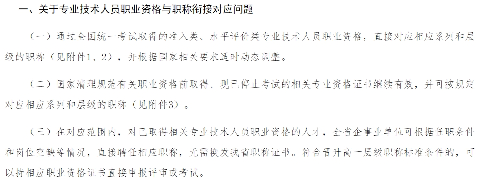 《準(zhǔn)入類專業(yè)技術(shù)人員職業(yè)資格與職稱對應(yīng)表》截圖