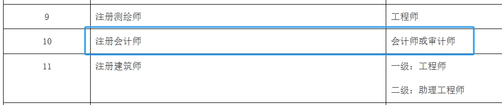 在《省人力資源和社會(huì)保障廳關(guān)于建立部分專業(yè)技術(shù)類職業(yè)資格與職稱對(duì)應(yīng)關(guān)系的通知》中寫到,通過全國統(tǒng)一考試,取得準(zhǔn)入類職業(yè)資格證書的專業(yè)技術(shù)人員,其職業(yè)資格直接對(duì)應(yīng)相應(yīng)系列和層級(jí)的職稱,兩者享有同等效力。其中,注冊(cè)會(huì)計(jì)師對(duì)應(yīng)會(huì)計(jì)師或?qū)徲?jì)師。