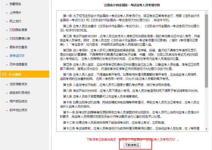 閱讀考場守則,點(diǎn)擊“下載準(zhǔn)考證”按鈕