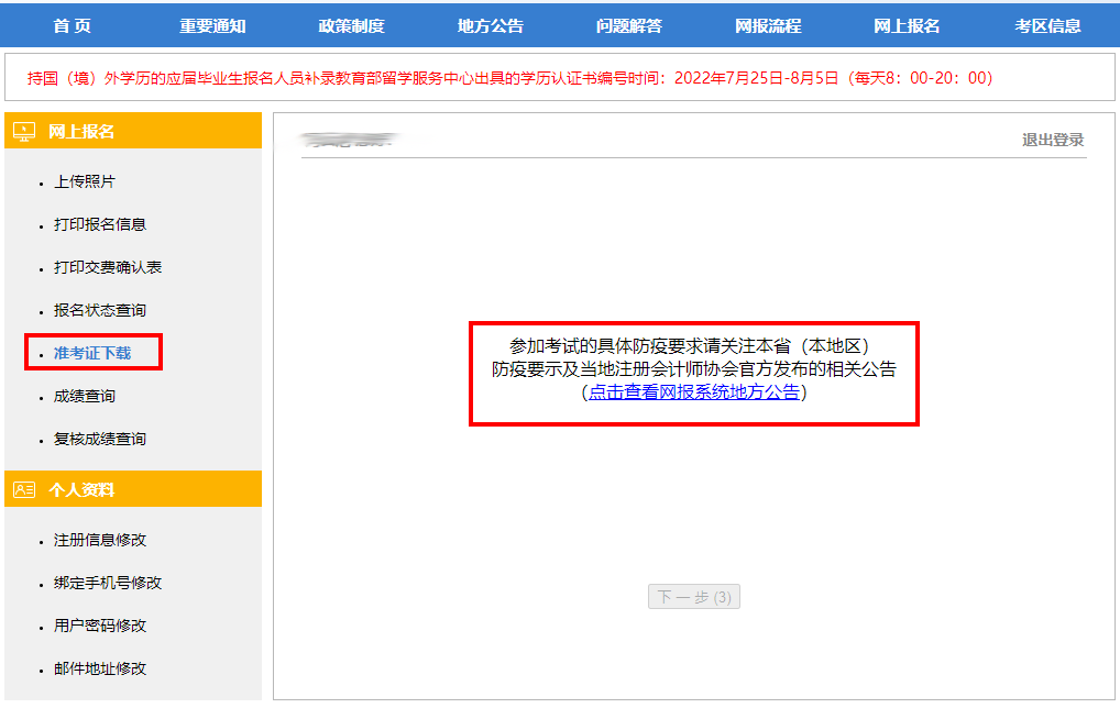 注會考試準(zhǔn)考證打印流程