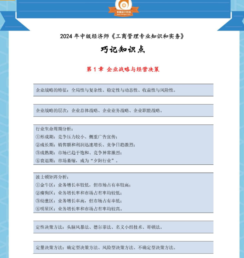 2024年中級(jí)經(jīng)濟(jì)師《工商管理》巧記知識(shí)點(diǎn)