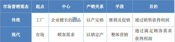 傳統(tǒng)市場營銷觀念與現(xiàn)代市場營銷觀念的比較