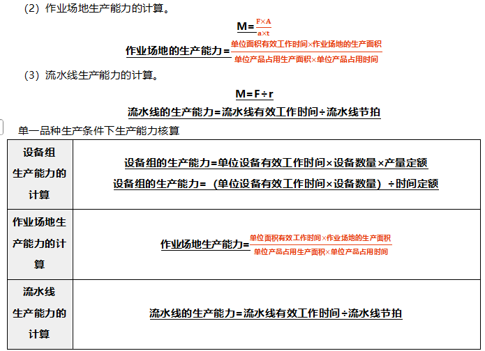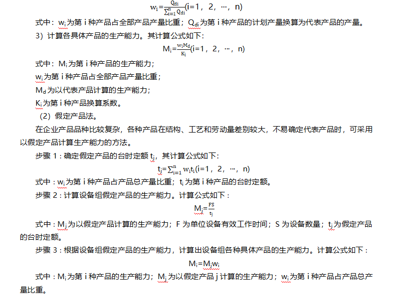 包括:單一品種生產(chǎn)條件下生產(chǎn)能力核算、多品種生產(chǎn)條件下生產(chǎn)能力核算。