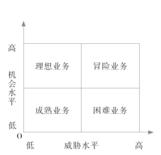冒險業(yè)務(wù)(高機會、高威脅):機會與危險同在,利益與風(fēng)險并存,企業(yè)應(yīng)當(dāng)進行全面分析,慎重抉擇,爭取利益 | |