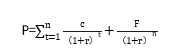 其中,P為債券市場(chǎng)價(jià)格;C為債券票面收益(年利息);F為債券面值;r為到期收益率;n為債券期限 | |