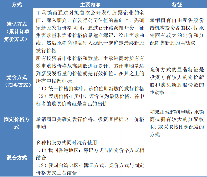 首次公開發(fā)行股票的定價(jià)方式